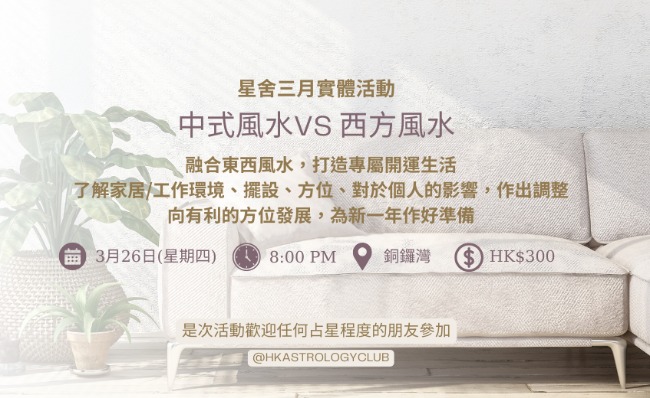 星舍 / 占星師均會舉辦不同題目的聚會,與占星愛好者分享,詳情請點選進入課程 / 聚會頁面